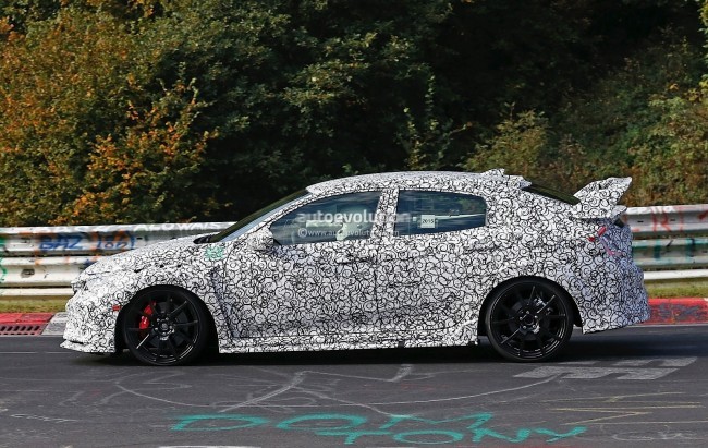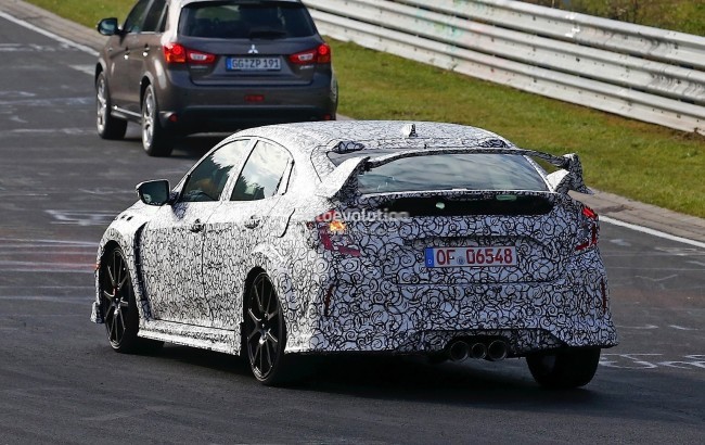 จากภาพที่ปล่อยออกมานั้น ระบุได้ว่า Honda Civic Type R ยังคงโครงสร้างภายนอกไว้อย่างสมบูรณ์ ไม่ต่างกับคันที่มีภาพหลุดในเดือนที่แล้วเท่าไรนัก เพียงแต่มีอุปกรณ์บางชิ้นเพิ่มเติมเข้ามาสร้างสีสัน อย่างเช่น ชายล่างกันชนหน้า, Spoiler ขนาดใหญ่ และล้อขนาด 19 นิ้ว