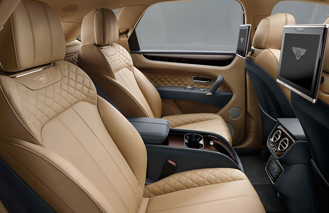 Bentayga จะมากับคุณสมบัติที่น่าตื่นตาตื่นใจเช่นตู้เย็น และนาฬิกาที่ตกแต่งด้วยทองคำ และเพชรซึ่งสามารถหมุนใหม่ได้เป็นระยะๆ โดยนาฬิกาจะติดตั้งมากับแผงควบคุมของรถที่ได้รับการออกแบบโดย Breitling