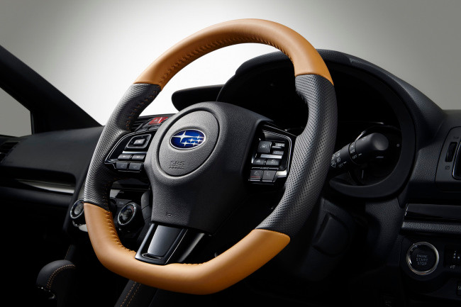 ภายในครบครันด้วยอุปกรณ์พวงมาลัยสามก้าน ที่ควบคุมระบบได้หลากหลาย ตกแต่งห้องโดยสารด้วยสีดำ-น้ำตาลทอง ให้ความรู้สึกเรียบหรู เพิ่มความสปอร์ตด้วยเบาะหนังแท้คุณภาพดี Mario Levi ของอิตาลี ที่ให้สีเดียวกับแผงประตู พวงมาลัยและฐานเกียร์ ทำให้ Subaru WRX S4 SporVita ดูโอ่อ่าสง่างาม