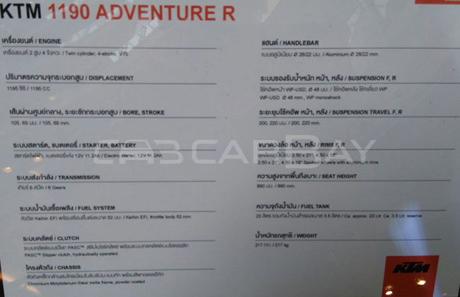 ในขณะที่ KTM Adventure 1190 R เป็นคำตอบของผู้ที่คิดว่า 1190 Adventure ไม่เหมาะสำหรับถนนแบบธรรมดา ผลที่ได้คือการสร้างรุ่น R ที่มีล้อขนาดใหญ่ถึง 21 นิ้วและ 18 นิ้ว ระบบกันสะเทือนที่ทรงพลังสำหรับการขับขี่ทางไกล พื้นที่ระหว่างพื้นที่กว้างขึ้น และคันบังคับที่กว้างขึ้น ยิ่งไปกว่านั้น Adventure R มาพร้อมกับ crash bar ที่นั่งแบบ one-piece และฐานล้อที่กว้างกว่าเดิม สำหรับลายรถก็เป็นลายสีส้มเพื่อสร้างความแตกต่างทางด้านรูปลักษณ์