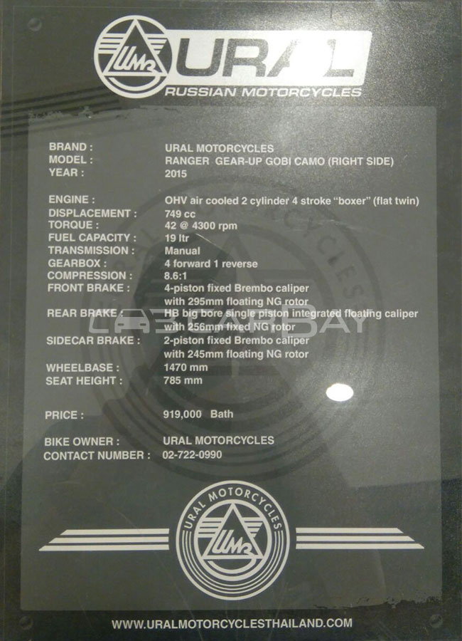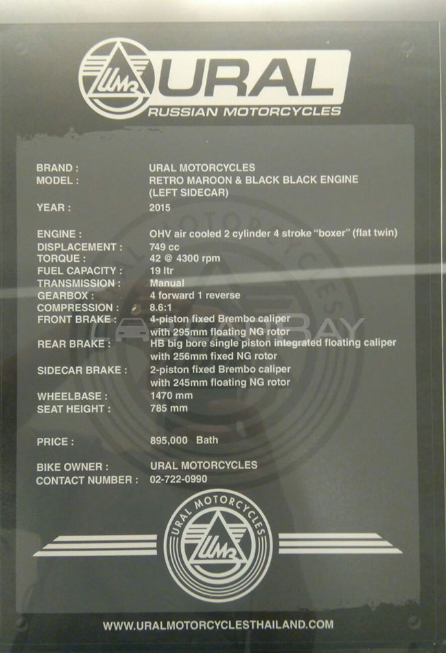 กรุงเทพ: ผู้ผลิตจักรยานยนต์พร้อมรถพ่วงชื่อดัง Ural Motorcycle ได้นำรถใหม่ส่งตรงมายังงาน Bangkok Motorbike Festival 2016 จักรยานยนต์ที่นำมาจัดแสดงประกอบด้วย Ural Retro Maroon และ Ural Ranger Gear-Up แม้ว่า Ural จะเข้ามาจัดจำหน่ายในประเทศไทยมายาวนานพอสมควร แต่ทางผู้ผลิตก็ยังไม่สามารถทำรายได้มากนักจากตลาดของไทย นั่นก็เพราะว่าลูกค้าชาวไทยส่วนใหญ่ยังไม่เปิดรับแนวคิดในการนำจักรยานยนต์พร้อมรถพ่วงมาใช้ในชีวิตประจำวัน แต่ผู้ผลิตชาวรัสเซียหวังว่าการนำเสนอใหม่ๆ จะช่วยเพิ่มยอดขายในตลาดได้